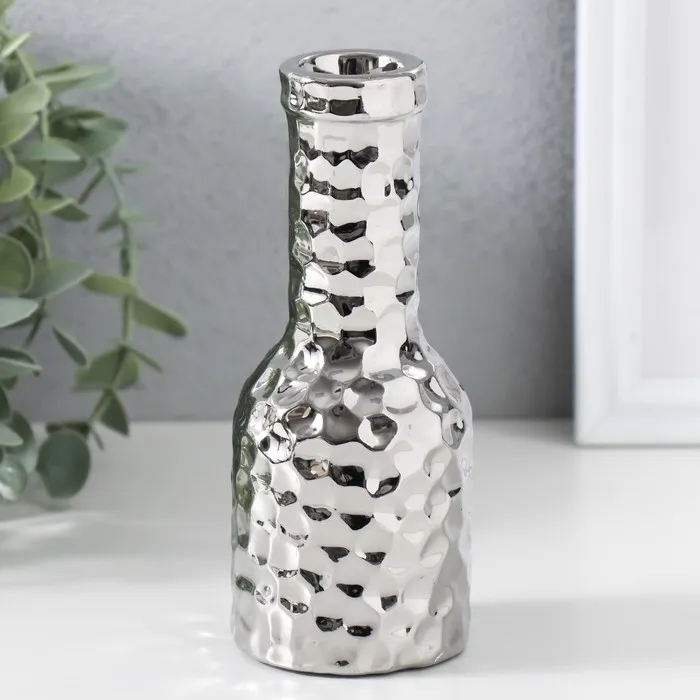 Подсвечник керамика на 1 свечу «Бутыль», d=1.5 см, серебро, 6×6×15 см — Характеристики