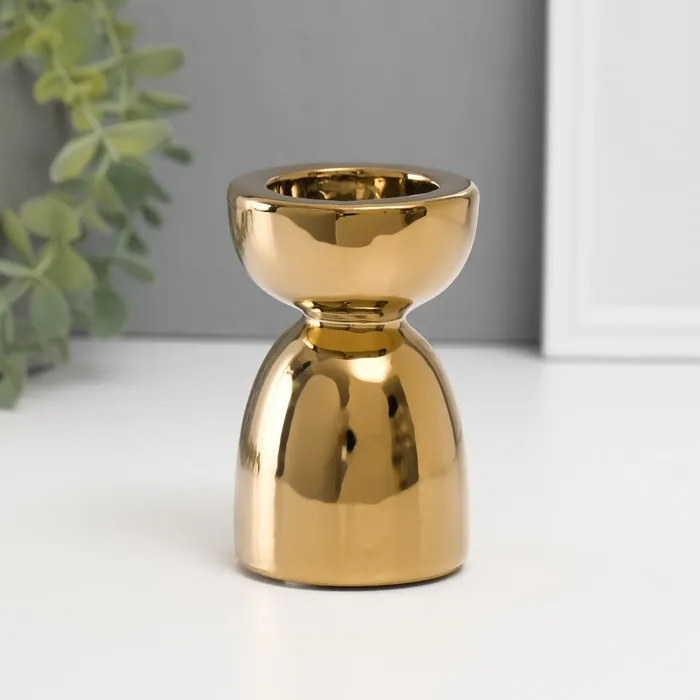 Подсвечник керамика на 1 свечу «Иллюзорность», d=4 см, золото, 6.5×6.5×10 см — Характеристики
