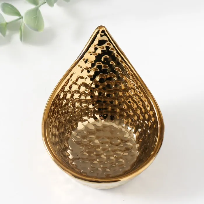 Подсвечник керамика на 1 свечу «Капля», d=5 см, золото, 11×9×8 см — Характеристики