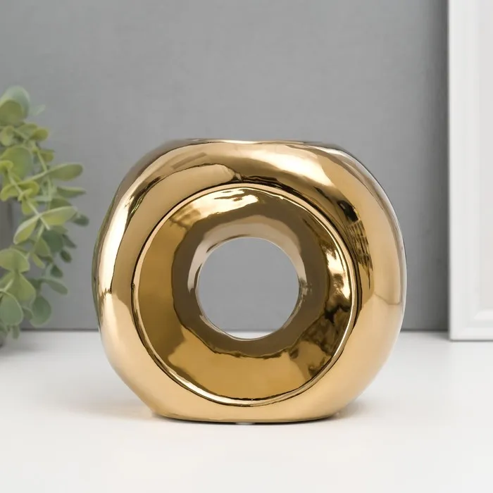 Подсвечник керамика на 1 свечу «Кольцо», d=6 см, золото, 16×8×14 см — Характеристики