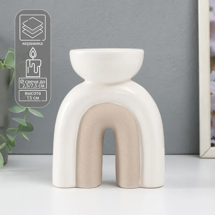 Подсвечник керамика на 1 свечу «Медуза», песочно-белый, 11.7×8×15 см — Характеристики