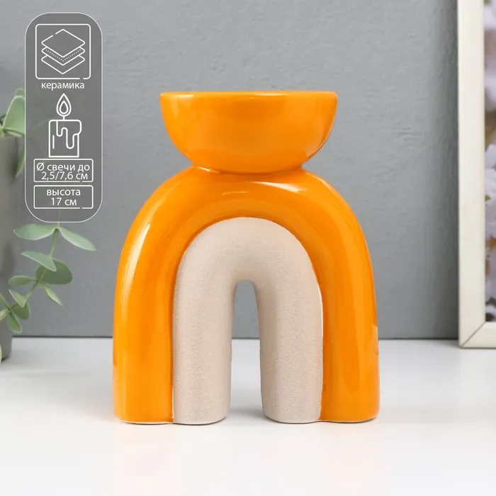 Подсвечник керамика на 1 свечу «Медуза», песочно-оранжевый, 11.7×8×15 см — Характеристики