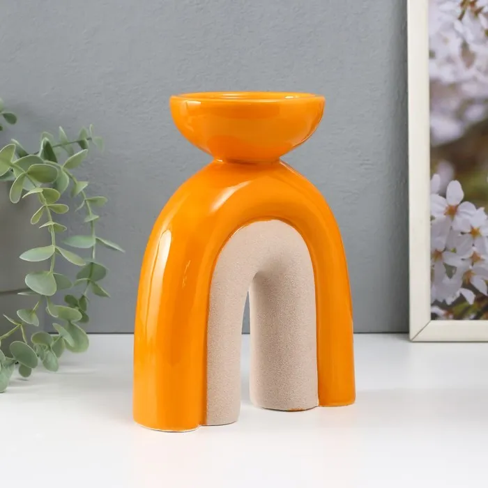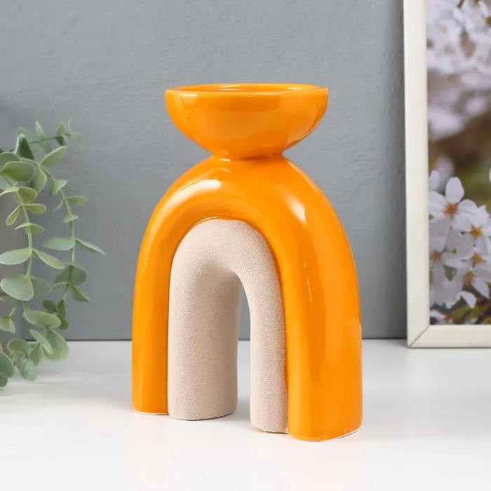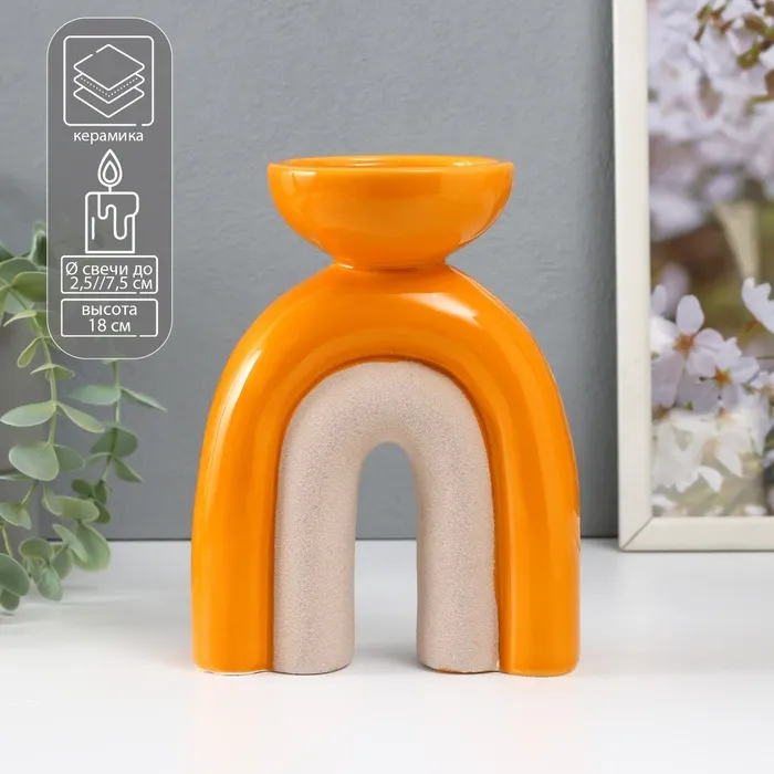 Подсвечник керамика на 1 свечу «Медуза», песочно-оранжевый, 13.5×8.7×18 см — Характеристики