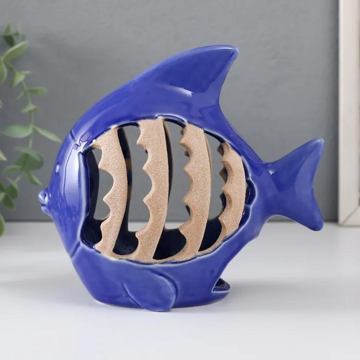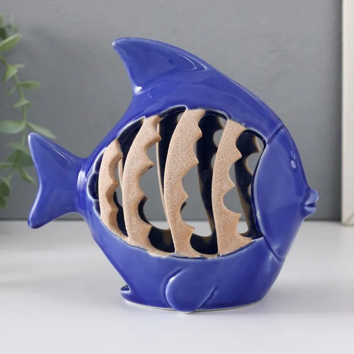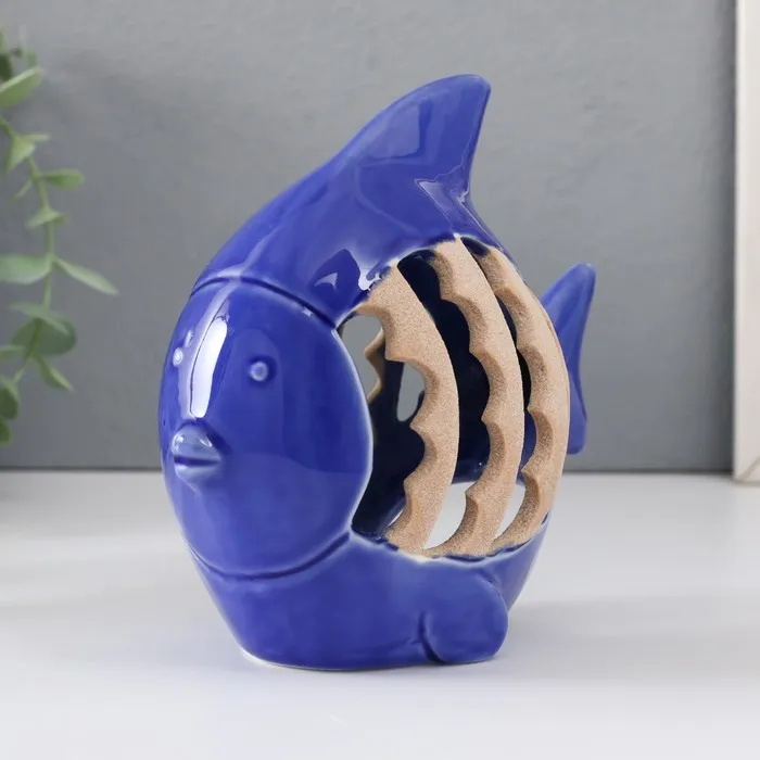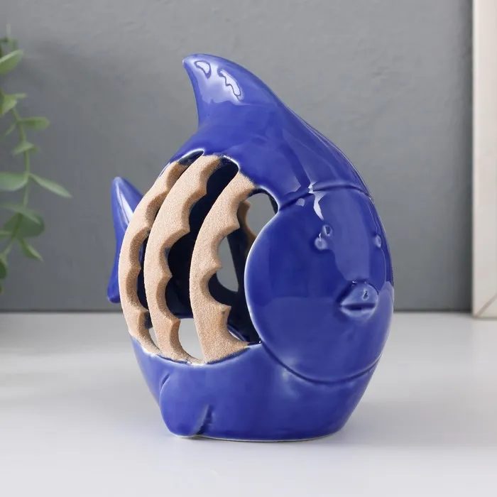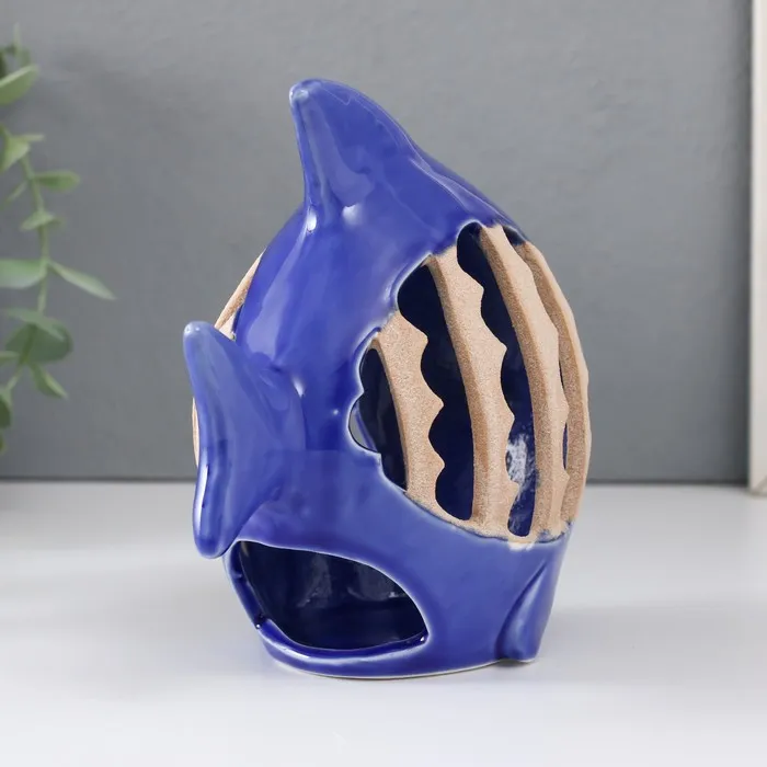 Подсвечник керамика на 1 свечу «Рыбка с узорами», синий, 15.7×8.8×14.3 см — Характеристики