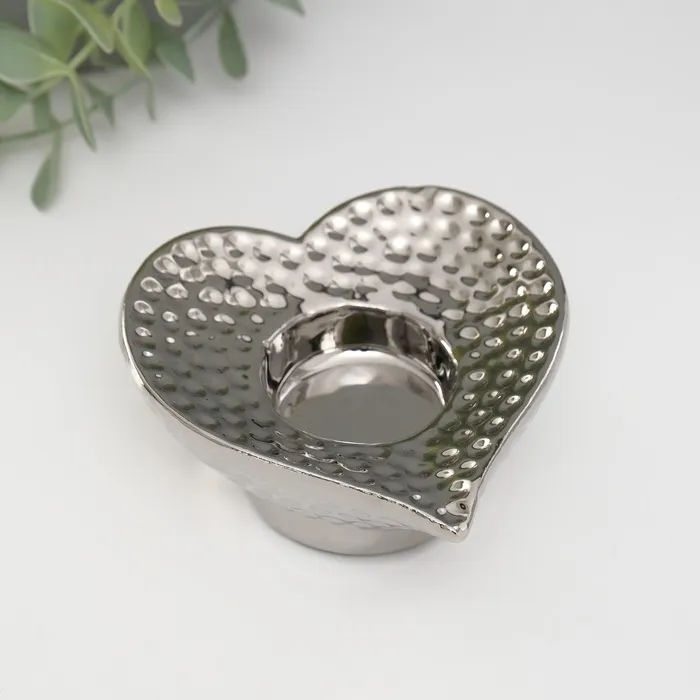 Подсвечник керамика на 1 свечу «Сердце», d=4 см, серебро, 10.2×10.2×4.3 см — Характеристики