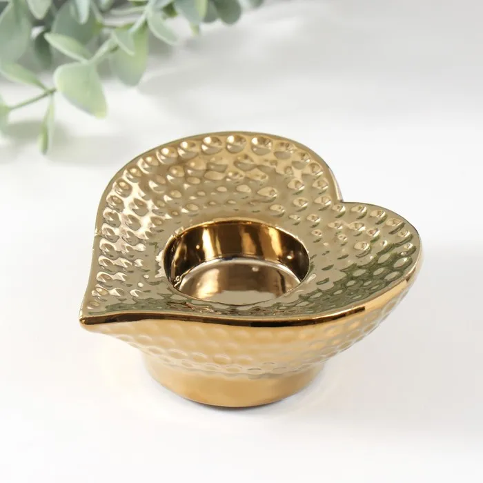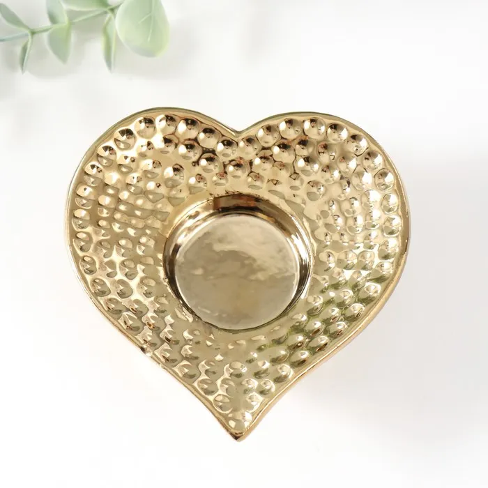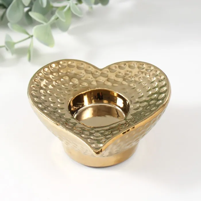 Подсвечник керамика на 1 свечу «Сердце», d=4 см, золото, 10.2×10.2×4.3 см — Характеристики