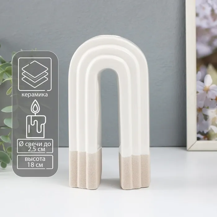 Подсвечник керамика на 1 свечу «Скара», песочно-белый, 10.3×6.2×18 см — Характеристики