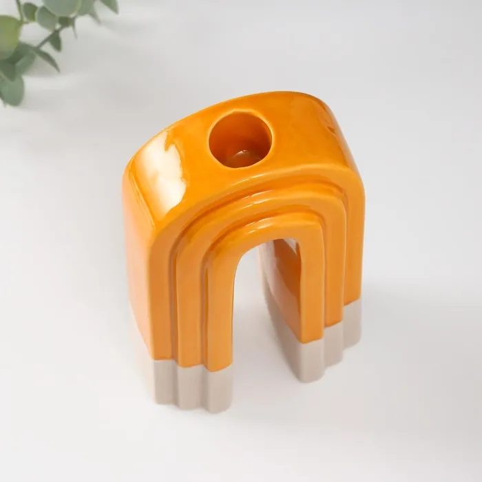 Подсвечник керамика на 1 свечу «Скара», песочно-оранжевый, 10.3×6.2×18 см — Характеристики