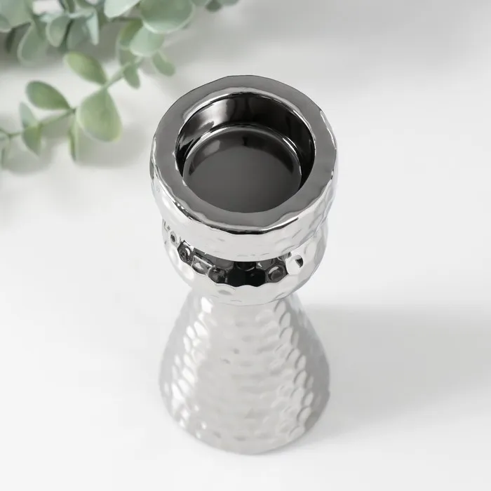 Подсвечник керамика на 1 свечу «Терра», d=3.5 см, серебро, 6×6×14.7 см