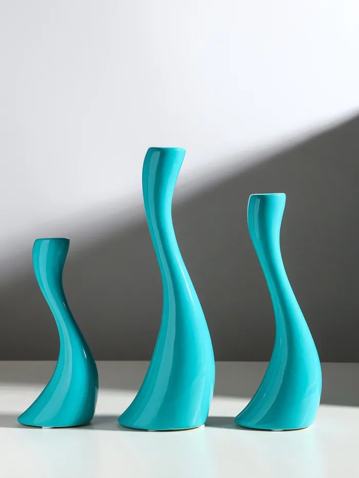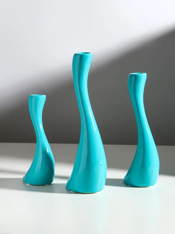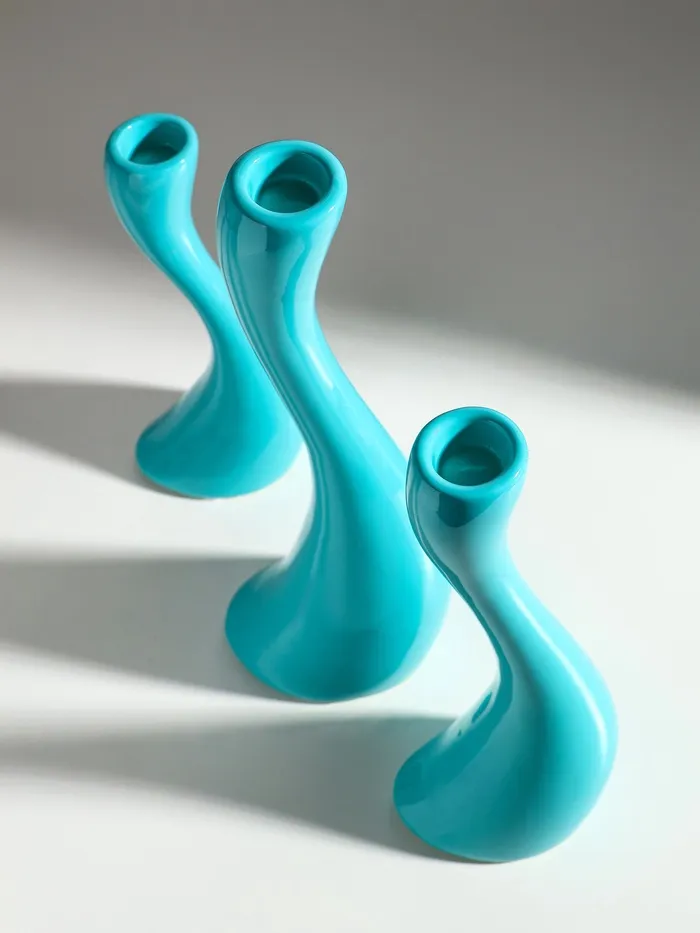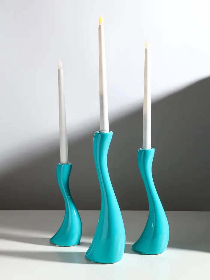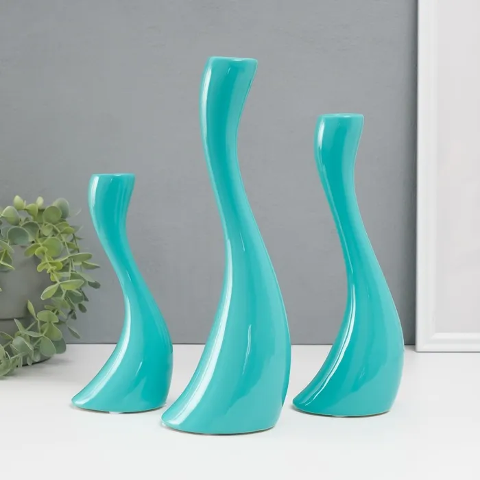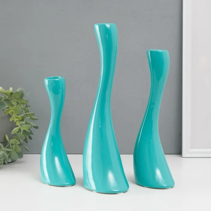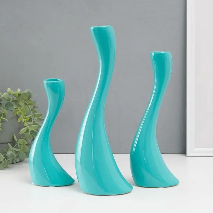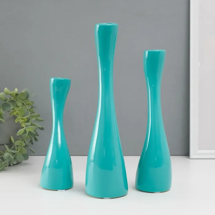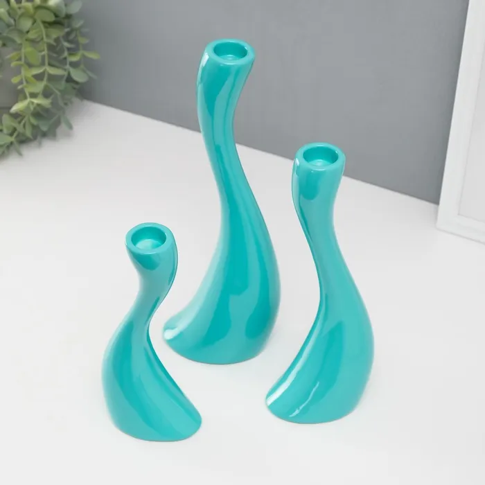 Подсвечник керамика на 1 свечу «Волна», набор 3 шт., d=2.5 см, бирюза, h=20; 25; 30 см — Характеристики