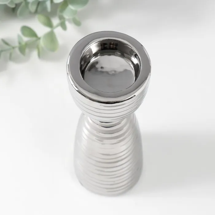 Подсвечник керамика на 1 свечу «Зебра», d=4 см, серебро, 6.5×6.5×18 см