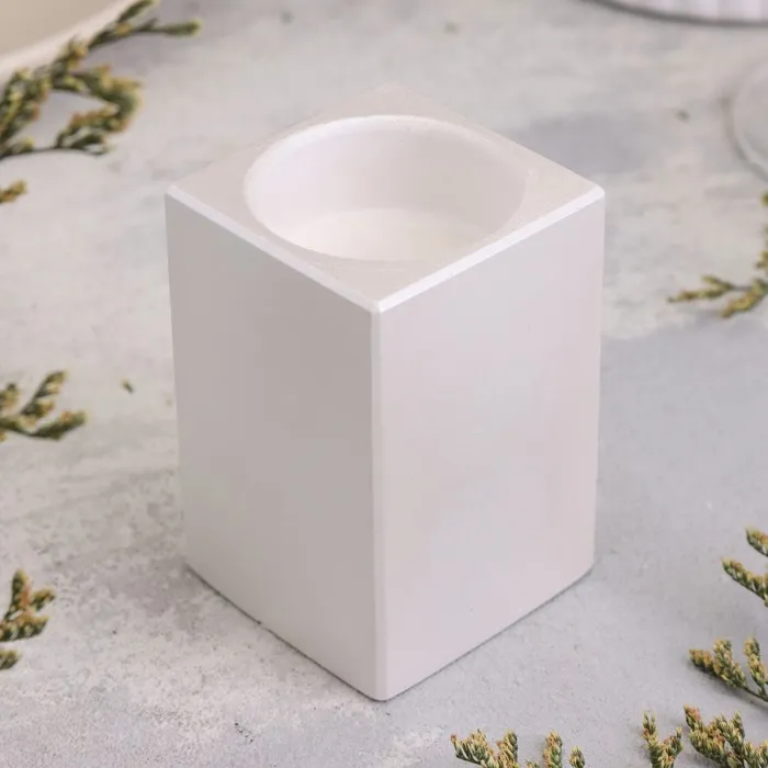 Подсвечник "Квадрат" из гипса, 5х8см, белый перламутр