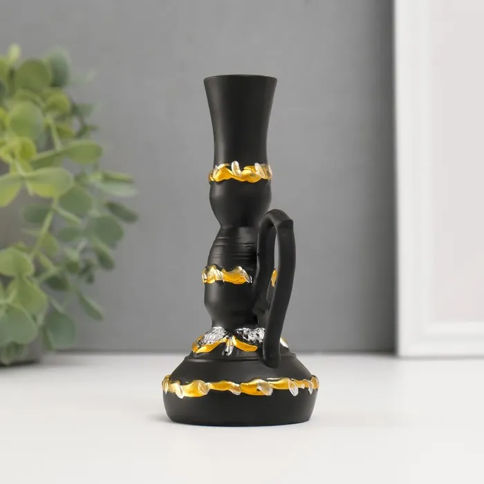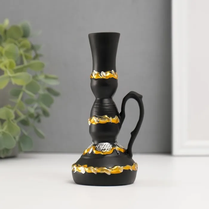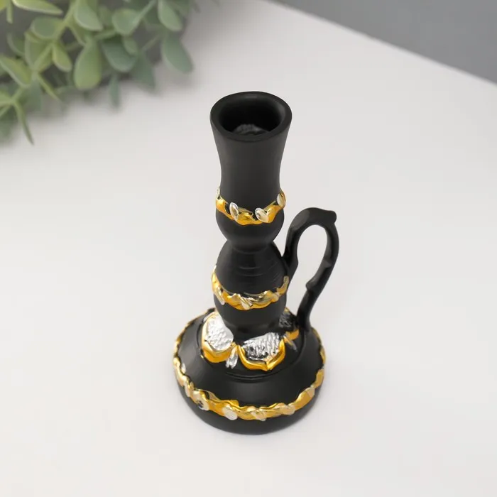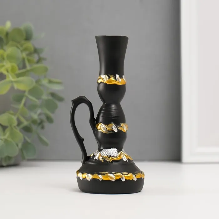 Подсвечник «Лампа с цветущим узором», полистоун, d-2 см, чёрный, 6×6×13 см — Характеристики