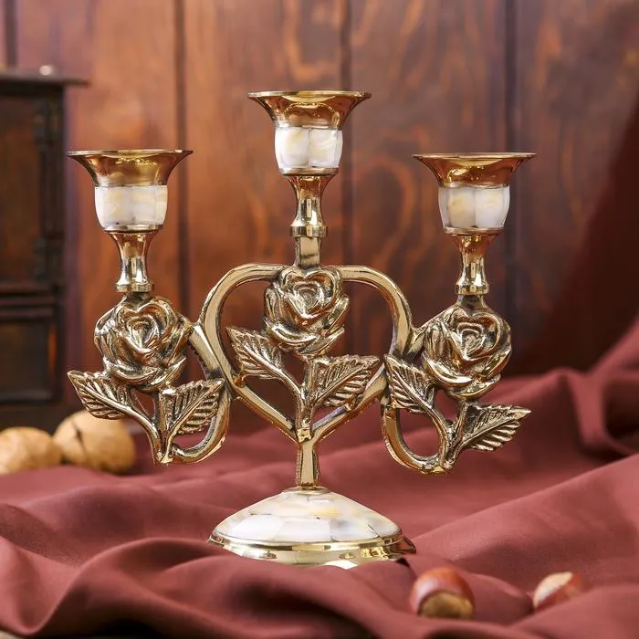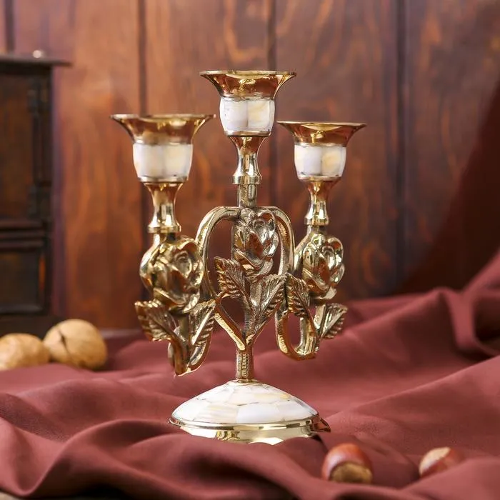 Индийские мастера знают, как работать с латунью, ведь они с древности создают различные изделия из этого металла. Например, изысканный подсвечник латунь на 3 свечи 16 см перламутр "Роза в сердце" поражает своими грациозными линиями, изысканным декором и перламутровыми вставками из экзотических материалов. В сумраке этот полезный предмет поможет Вам придержать свечу в своих крепких объятиях, а на свету его изумительный блеск будет переливаться и играть в лучах солнца. Великолепный аксессуар, который украсит Ваш интерьер и станет актуальным подарком на «Медную свадьбу» или любой другой праздник.