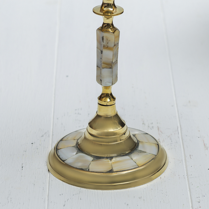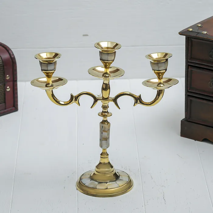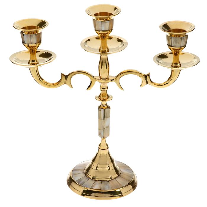 Индийские мастера знают, как работать с латунью, ведь они с древности создают различные изделия из этого металла. Например, изысканный подсвечник латунь на 3 свечи "Кардинал" 23 см. перламутр поражает своими грациозными линиями, изысканным декором и перламутровыми вставками из экзотических материалов. В сумраке этот полезный предмет поможет Вам придержать свечу в своих крепких объятиях, а на свету его изумительный блеск будет переливаться и играть в лучах солнца. Великолепный аксессуар, который украсит Ваш интерьер и станет актуальным подарком на «Медную свадьбу» или любой другой праздник.