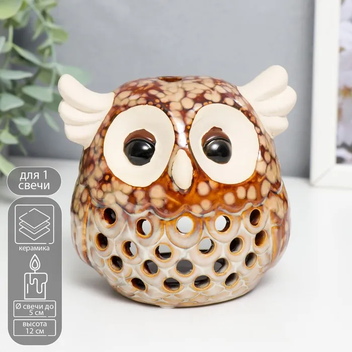 Подсвечник керамика на 1 свечу "Маленький филин" 12х10х9 см