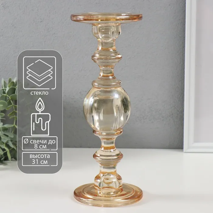 Стеклянный подсвечник на 1 свечу двусторонний «Классический с шаром», золотистый, 11×11×29.5 см
