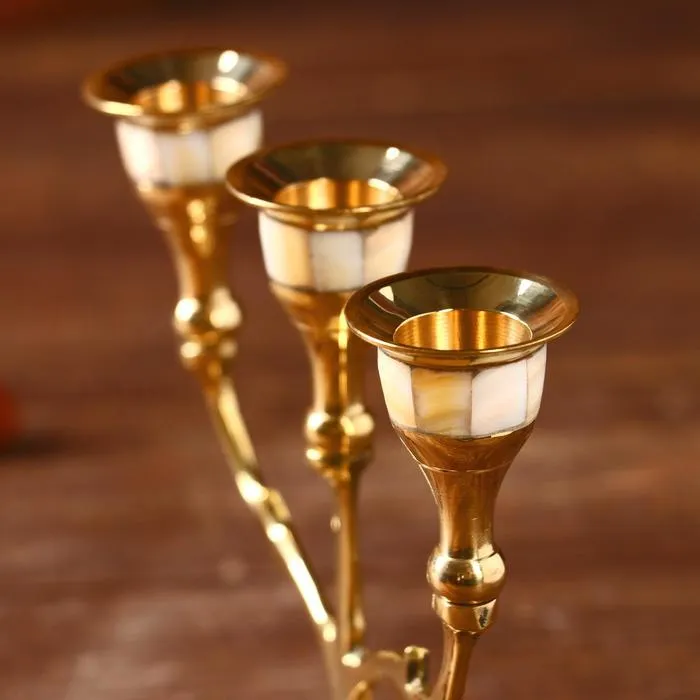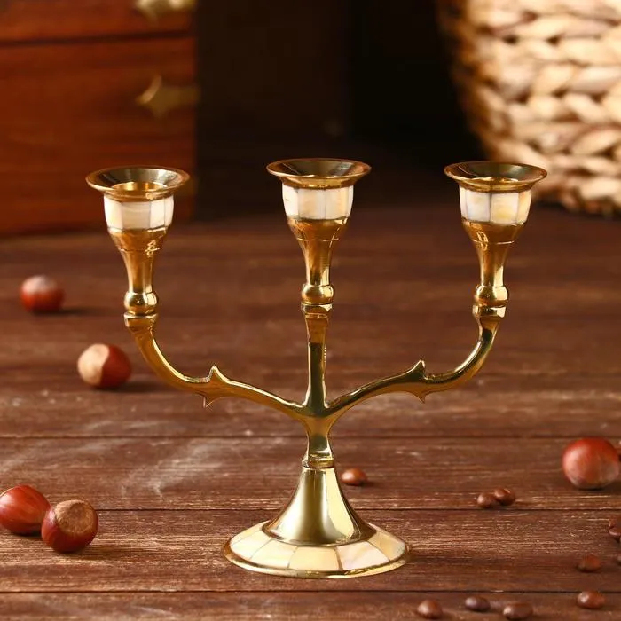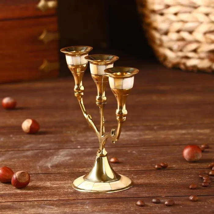 Подсвечник "Лоренц" на 3 свечи латунь, перламутр 13,5х6,5х15,5 см — Характеристики