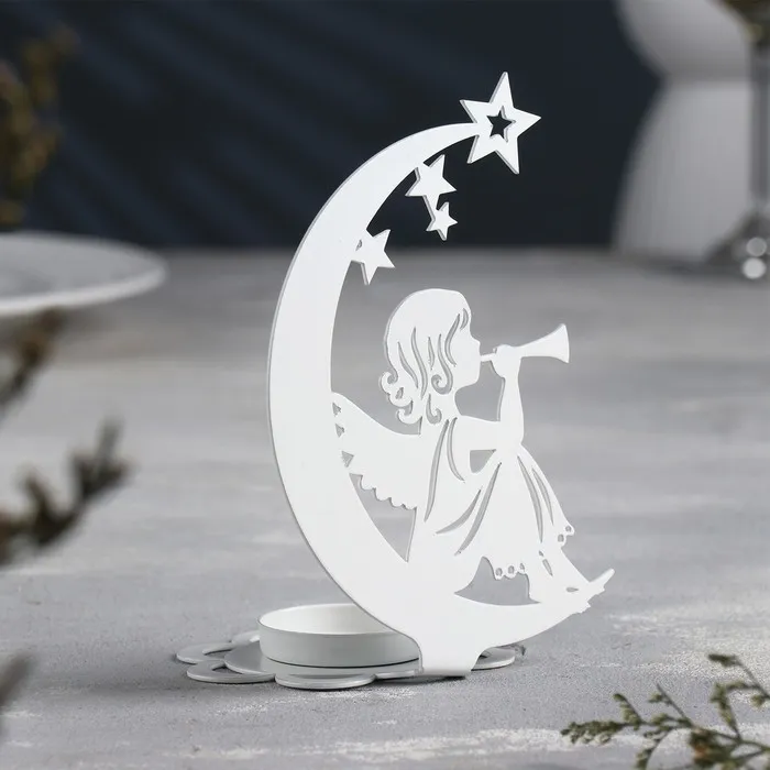 Подсвечник "Луна" металл на одну свечу, 7,1х10,8х14,7 см, белый — Характеристики