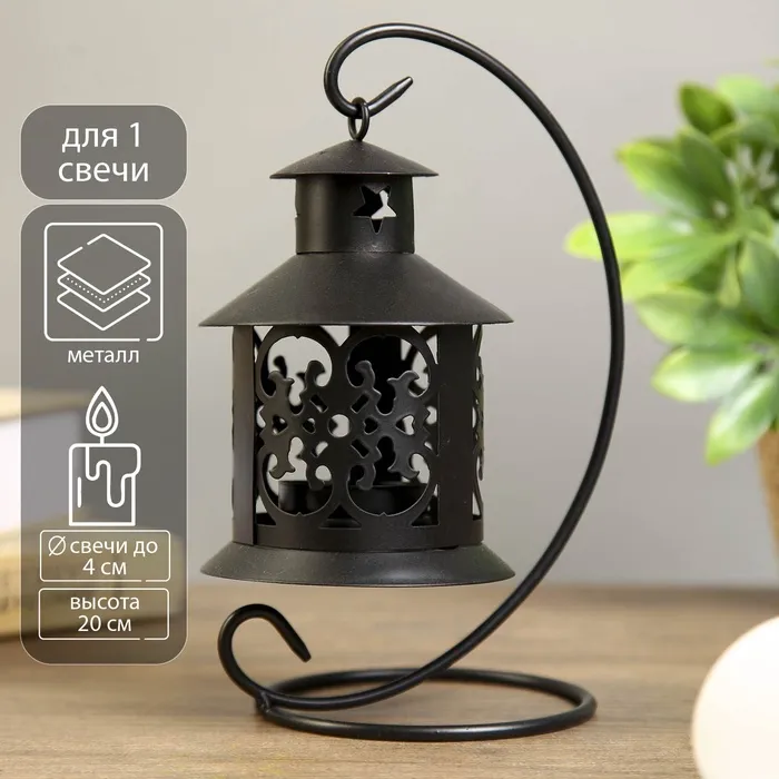 Подсвечник металл 1 свеча "Ажурный фонарик" чёрный 23х14х9,5 см — Характеристики
