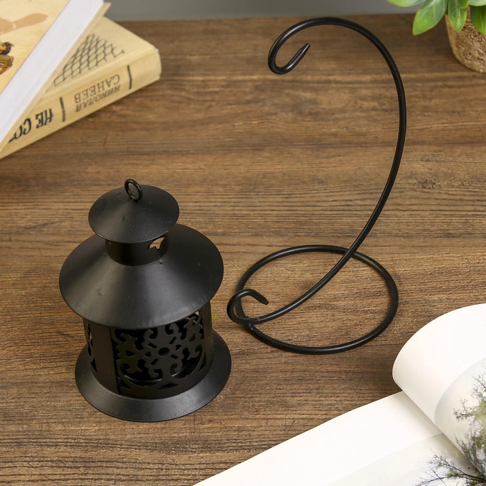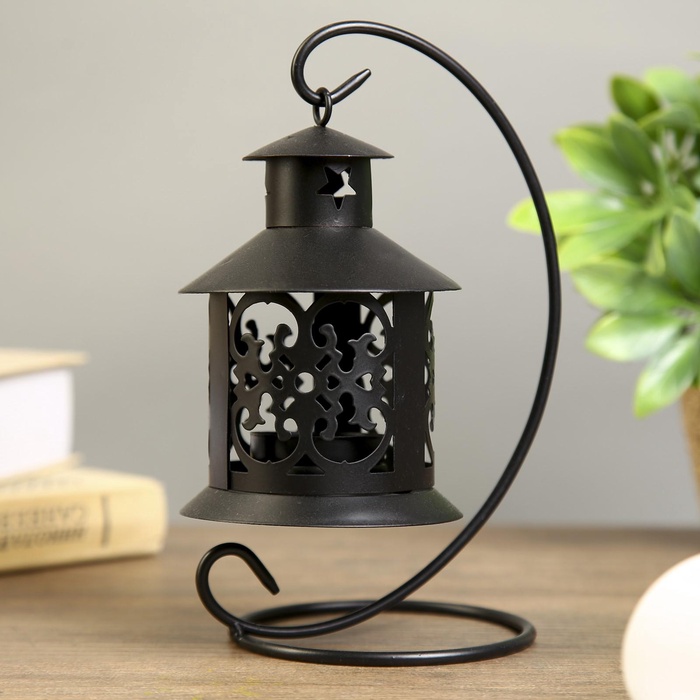 Подсвечник металл 1 свеча "Ажурный фонарик" чёрный 23х14х9,5 см