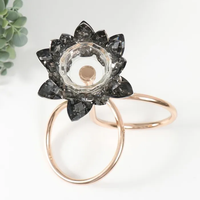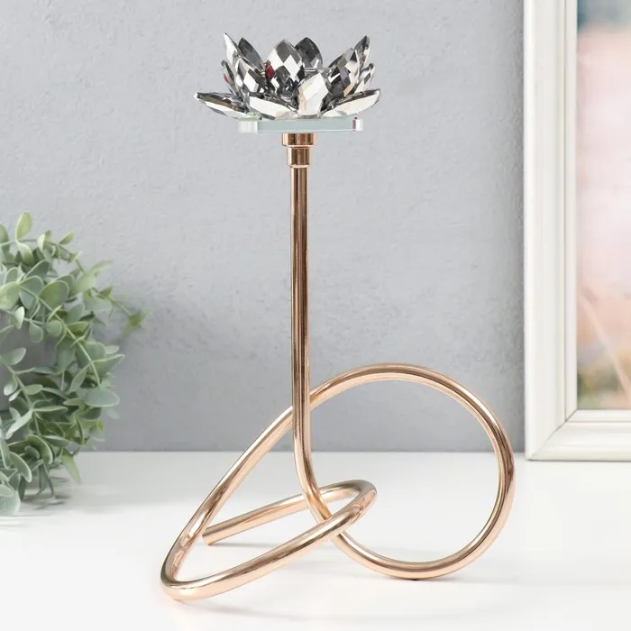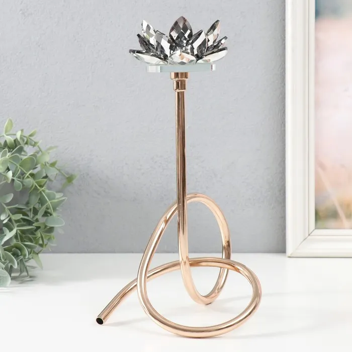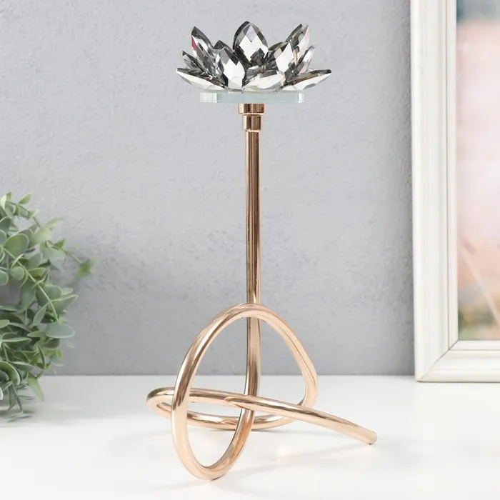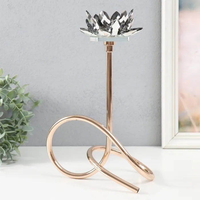 Подсвечник металл, акрил на 1 свечу «Чёрный лотос. Завиток», d=4 см, золото, 19×29 см — Характеристики