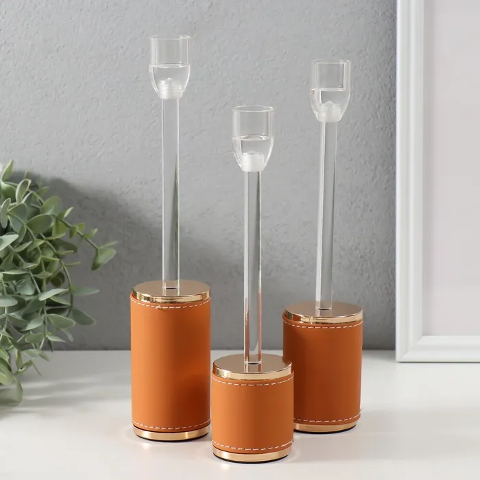 Подсвечник металл, акрил на 1 свечу «Надёжность», d=2.2 см, набор 3 шт., h=27 см, 24.5 см, 23 см — Характеристики