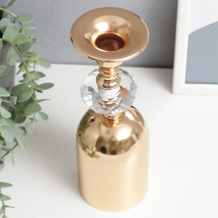 Подсвечник металл, акрил на 1 свечу "Перевёрнутый бокал с кристаллом" золото 24х7,5х7,5 см — Характеристики