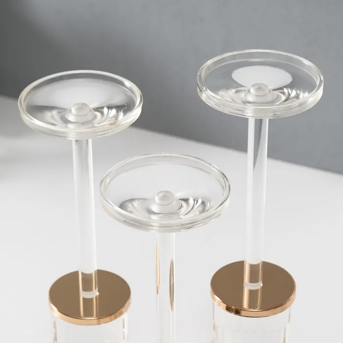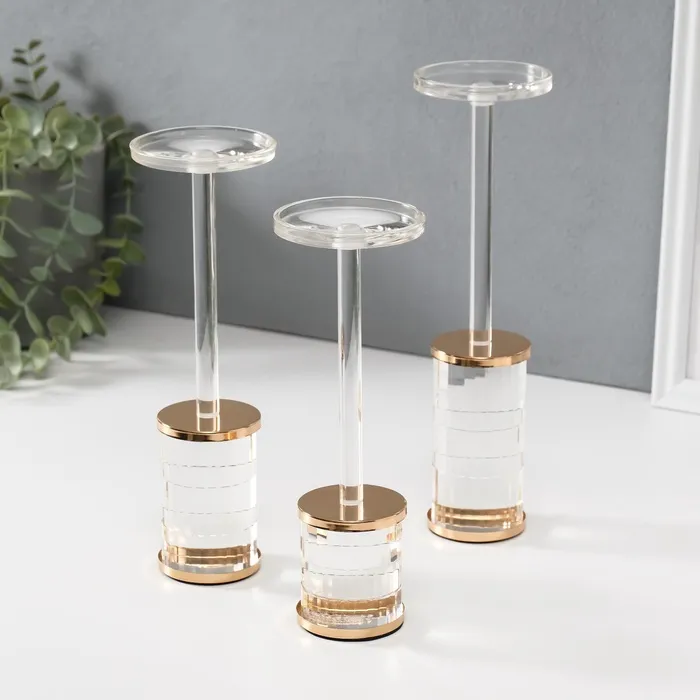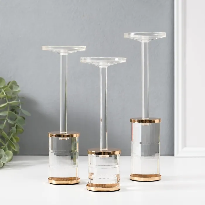 Подсвечник металл, акрил на 1 свечу «Прямоугольники», d=6.5 см, набор 3 шт., h=24 см, 22.5 см, 20.5 см