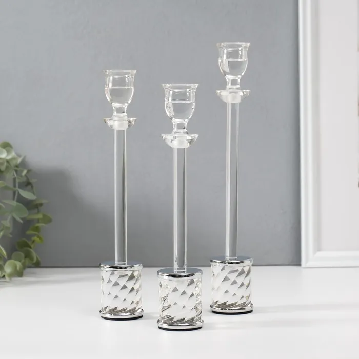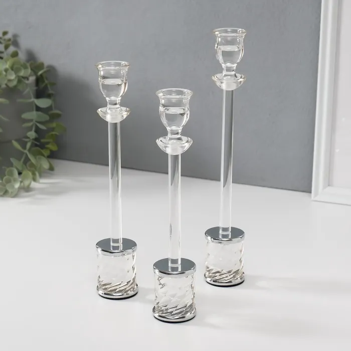 Подсвечник металл, акрил на 1 свечу «Вихрь», d=2.2 см, набор 3 шт., h=25.5 см, 23.5 см, 21 см — Характеристики
