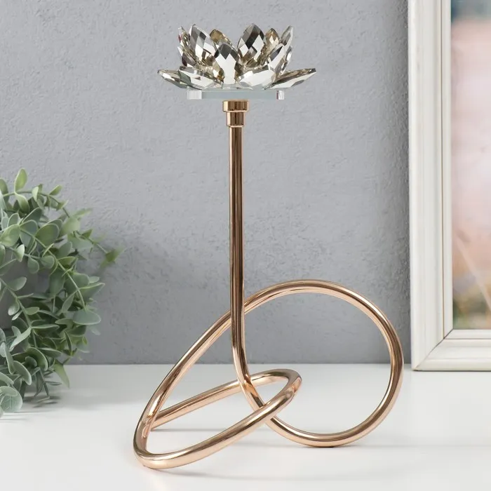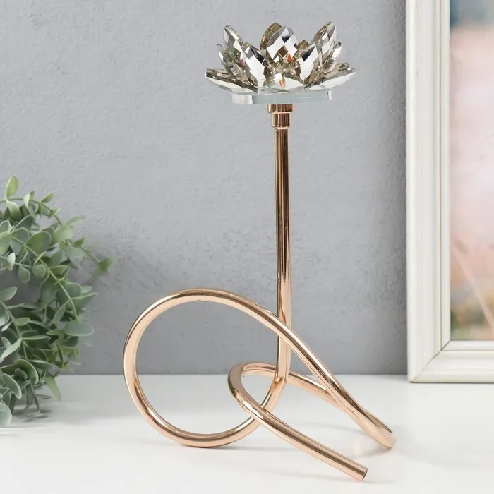 Подсвечник металл, акрил на 1 свечу «Золотой лотос», d=4 см, золото, 19×29 см — Характеристики