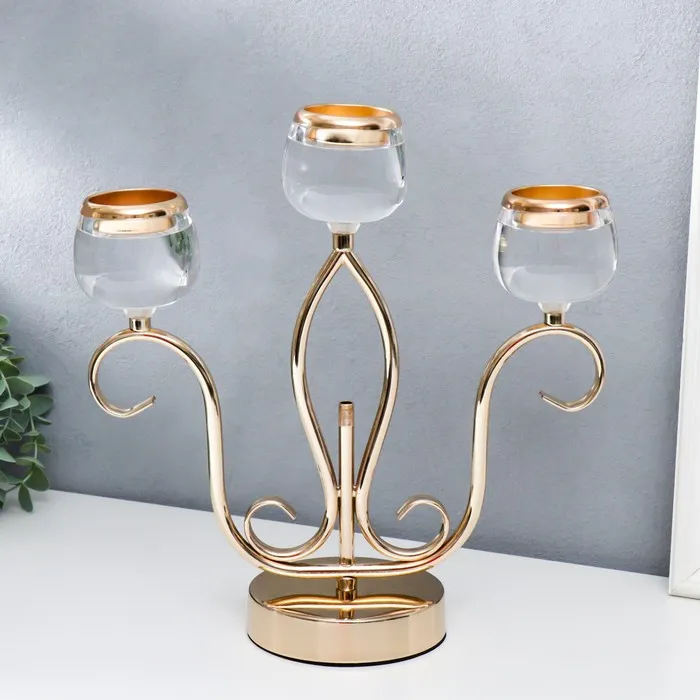 Подсвечник металл, акрил на 3 свечи "Жардин" золото 30х12х31 см