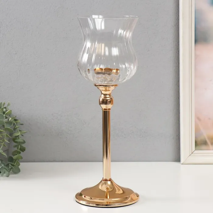 Подсвечник металл «Бокал на золотой ножке», d=5.5 см, 13×13×37 см — Характеристики