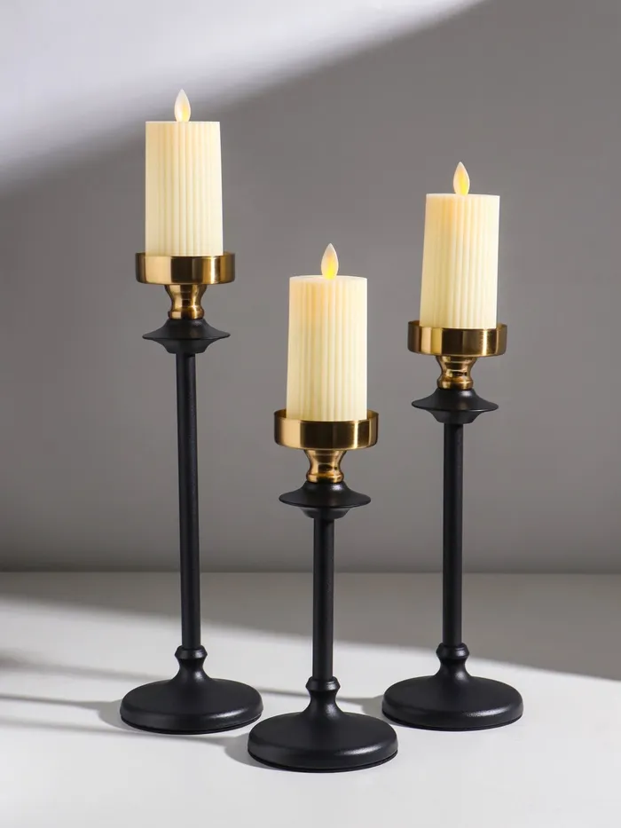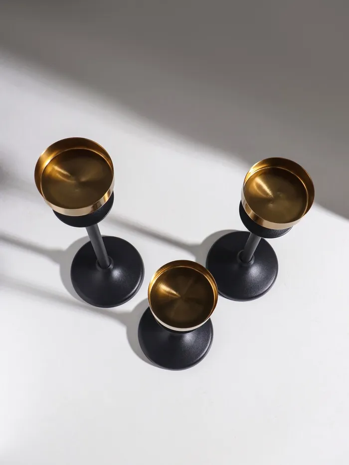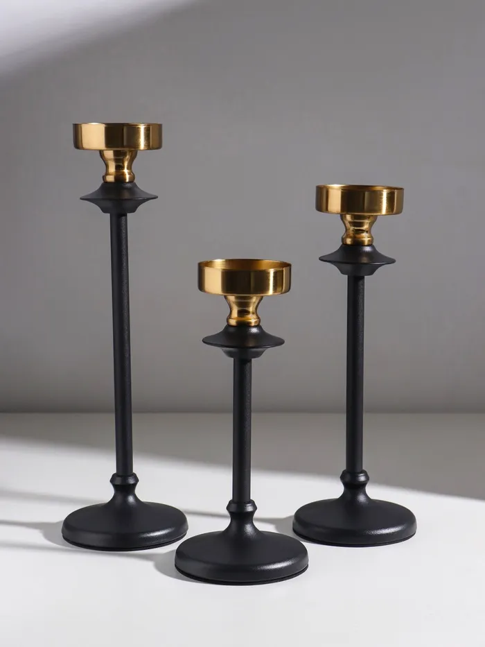 Подсвечник металл "Эстетика" чёрный с золотом d=6,7 см набор 3 шт h=222,5, 28 и 32 см — Характеристики