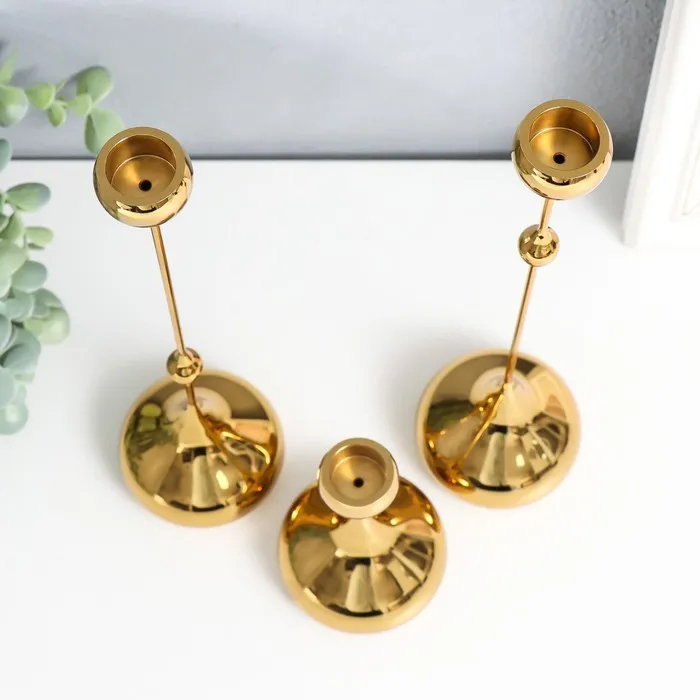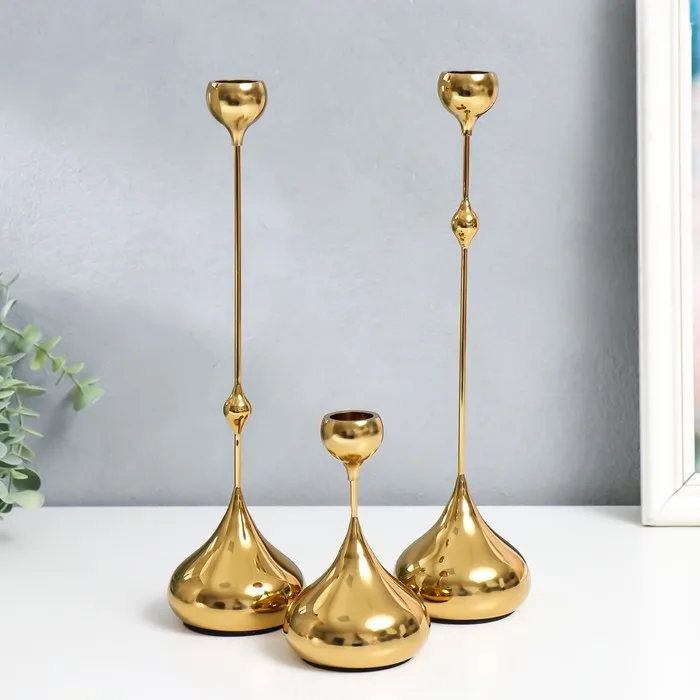 Подсвечник металл "Капля" набор 3 шт золото 8,5х8,5х15;8,5х8,5х32 см — Характеристики