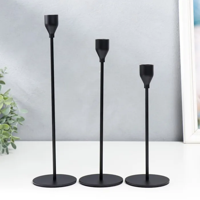 Подсвечник металл "Классика" набор 3 шт чёрный высота 22; 28; 32 см 32х8х8 см