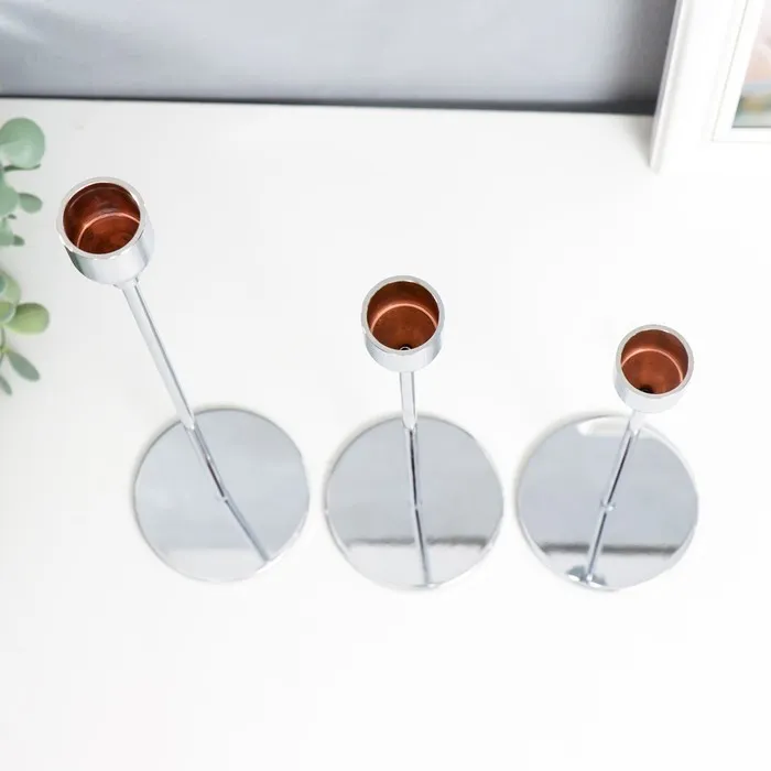Подсвечник металл "Классика" набор 3 шт серебро высота 22; 28; 32 см 32х8х8 см
