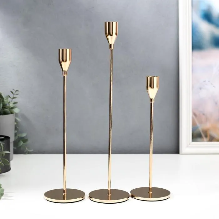 Подсвечник металл "Классика" набор 3 шт золото 24,5х7,7х7,7, 29,5х7,7х7,7, 34,5х7,7х7,7 см