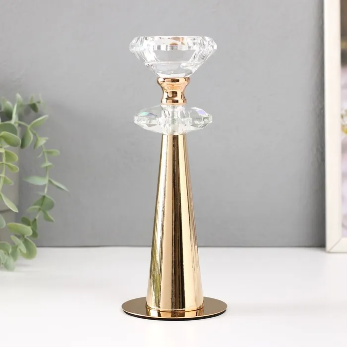 Подсвечник металл на 1 свечу «Альфия», золото, d=4 см, 7.5×7.5×20 см — Характеристики
