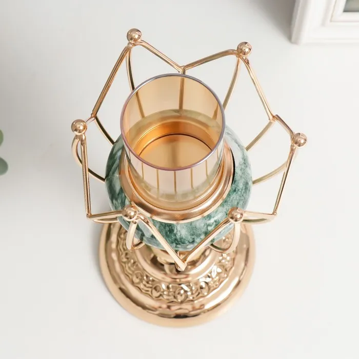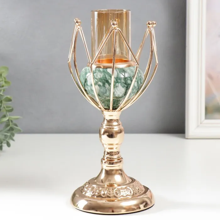Подсвечник металл на 1 свечу "Бутон. Бело-зелёный мрамор" золото 25х11х11 см — Характеристики