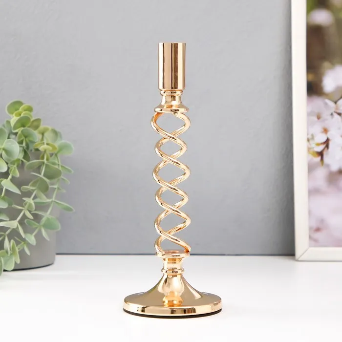 Подсвечник металл на 1 свечу d=2 см "Аделин" золото 9х9х25 см