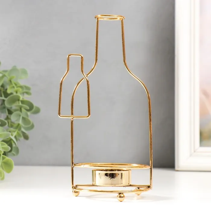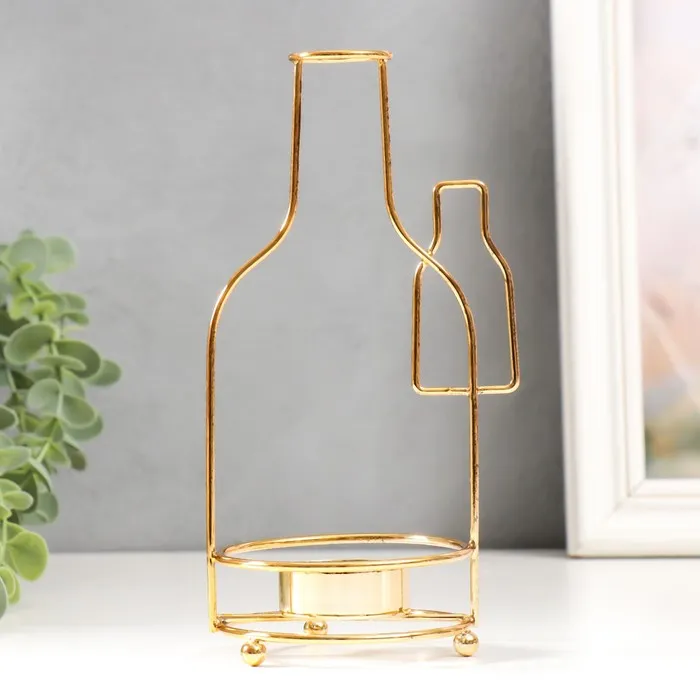 Подсвечник металл на 1 свечу "Две бутылочки" d-4 см золото 8х8,5х19 см