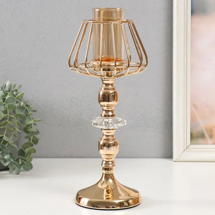 Подсвечник металл на 1 свечу «Флавия», золото, d=4.5 см, 13×13×33 см — Характеристики