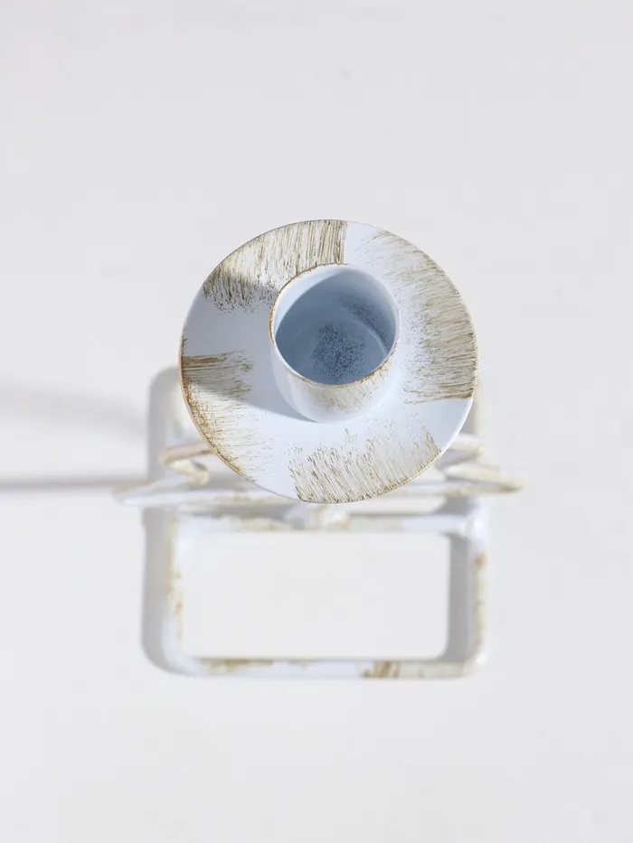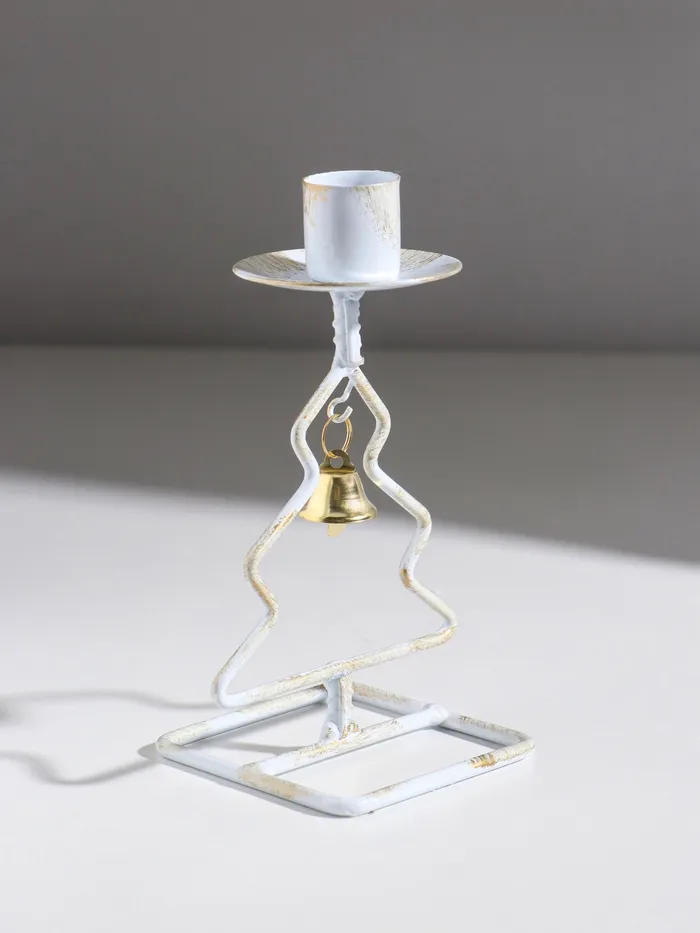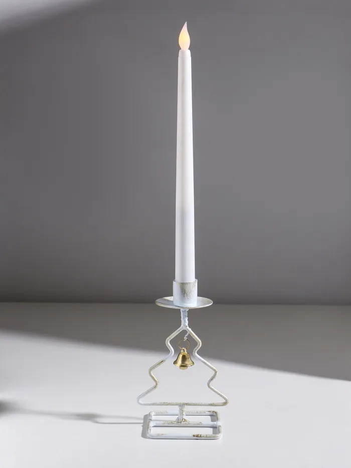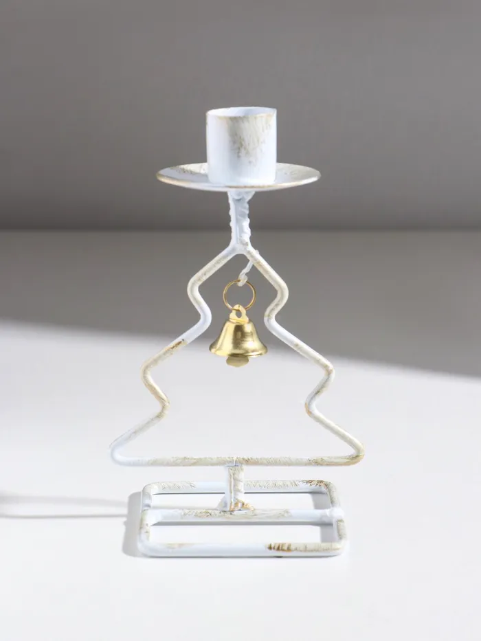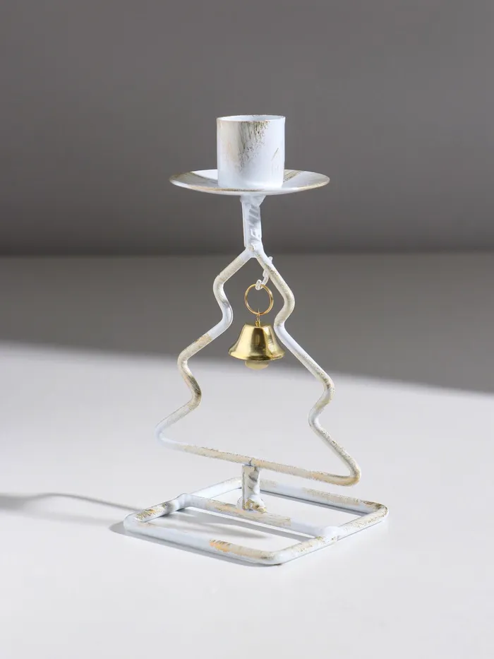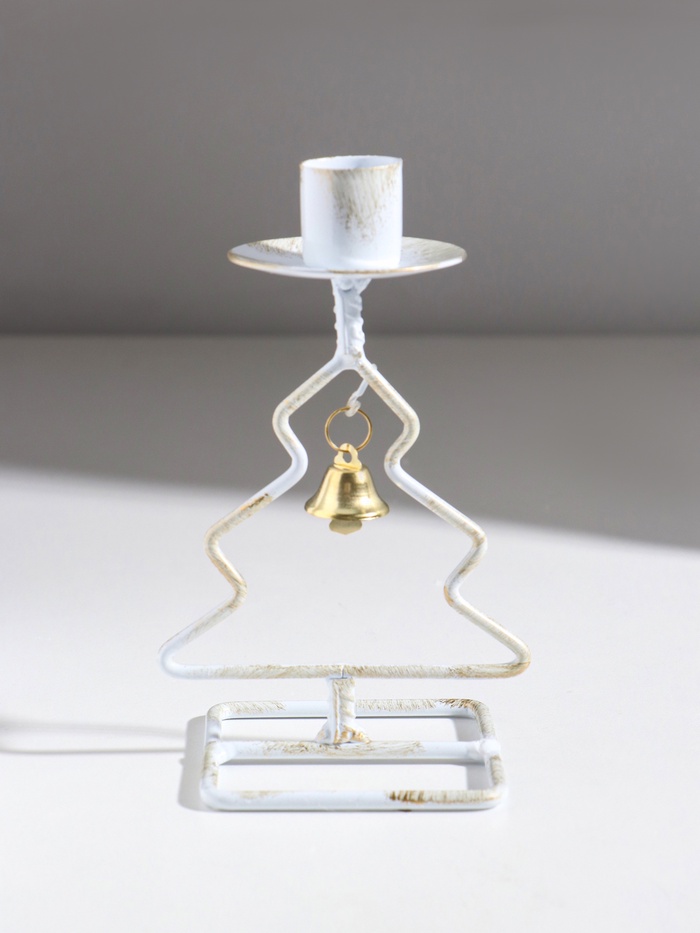 Подсвечник металл на 1 свечу "Ёлочка" белый с патиной d=2,3 см 8,5х7,5х16 см