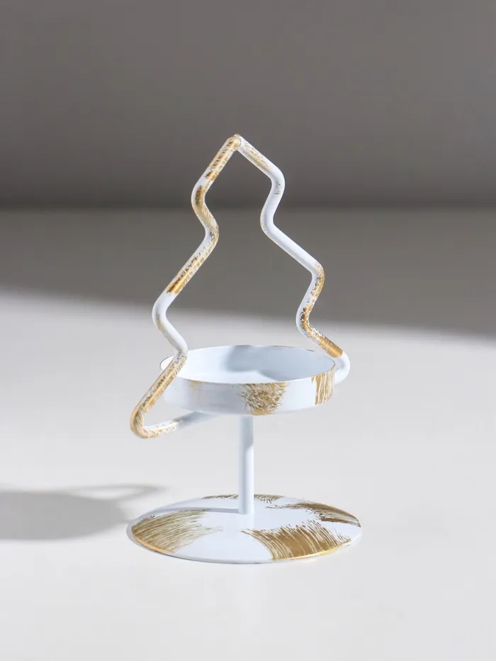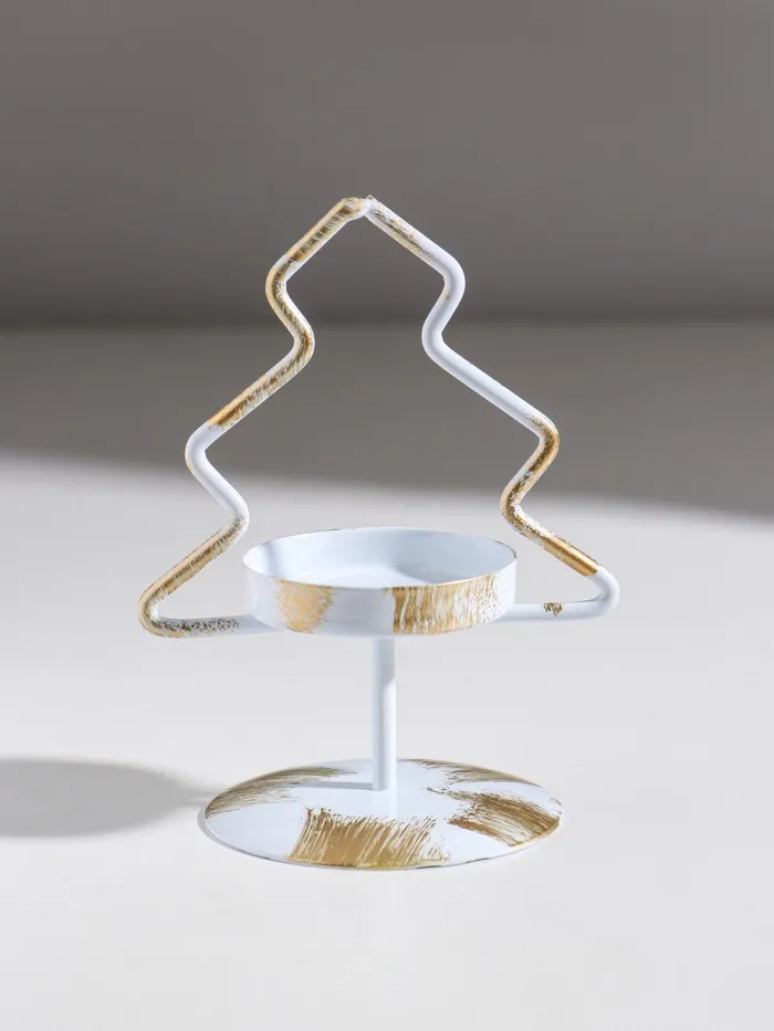 Подсвечник металл на 1 свечу "Ёлочка" белый с патиной d=5 см 7х7х12,5 см