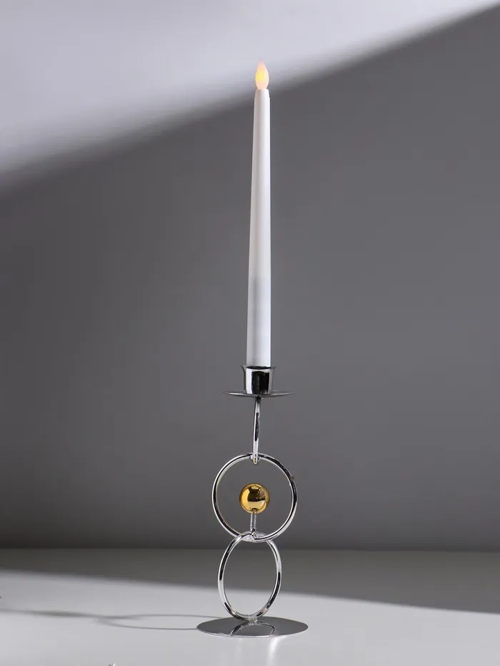 Подсвечник металл на 1 свечу "Кольца и шарики" серебро с золотом d=2,5 см 9х9х22 см — Характеристики