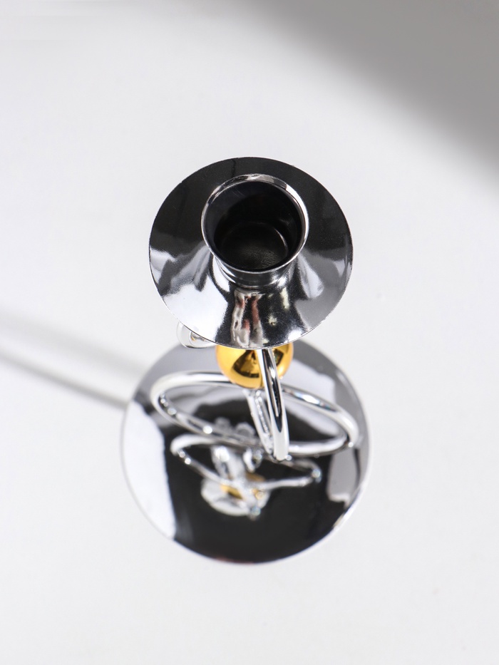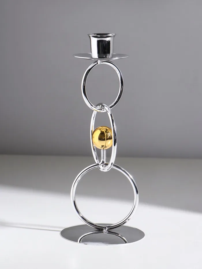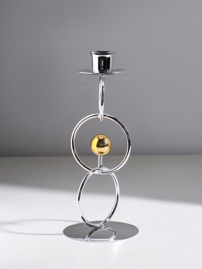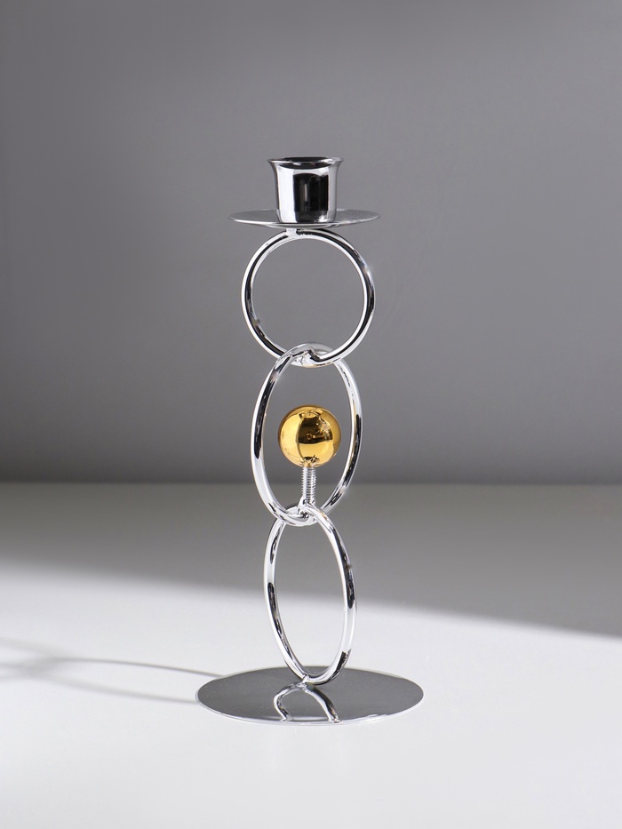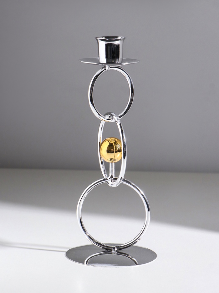 Подсвечник металл на 1 свечу "Кольца и шарики" серебро с золотом d=2,5 см 9х9х22 см