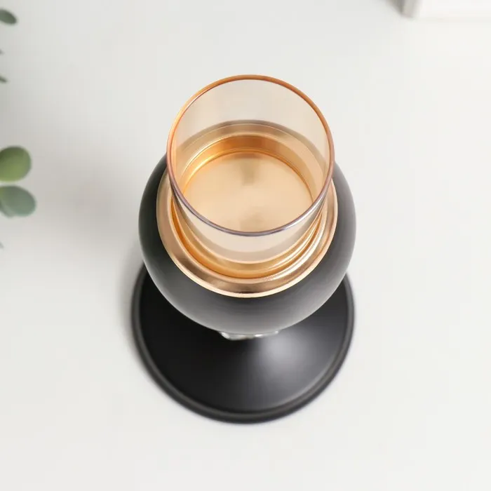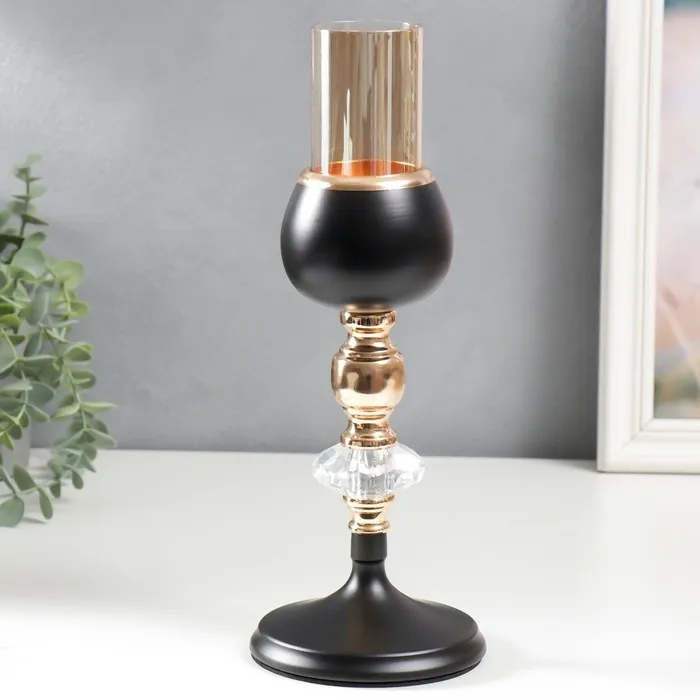 Подсвечник металл на 1 свечу «Кристалл и шар», золото, чёрный, 30×11×11 см — Характеристики