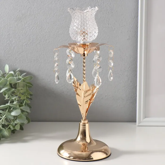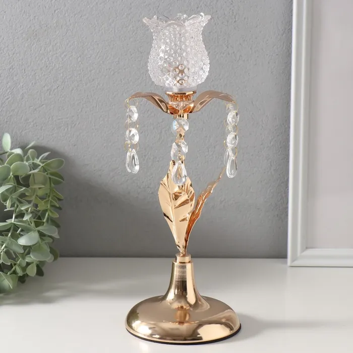 Подсвечник металл на 1 свечу «Распустившийся цветок», d=3 см, 11×11×30 см — Характеристики