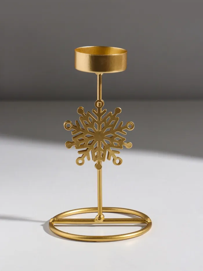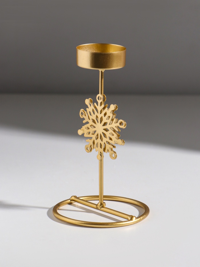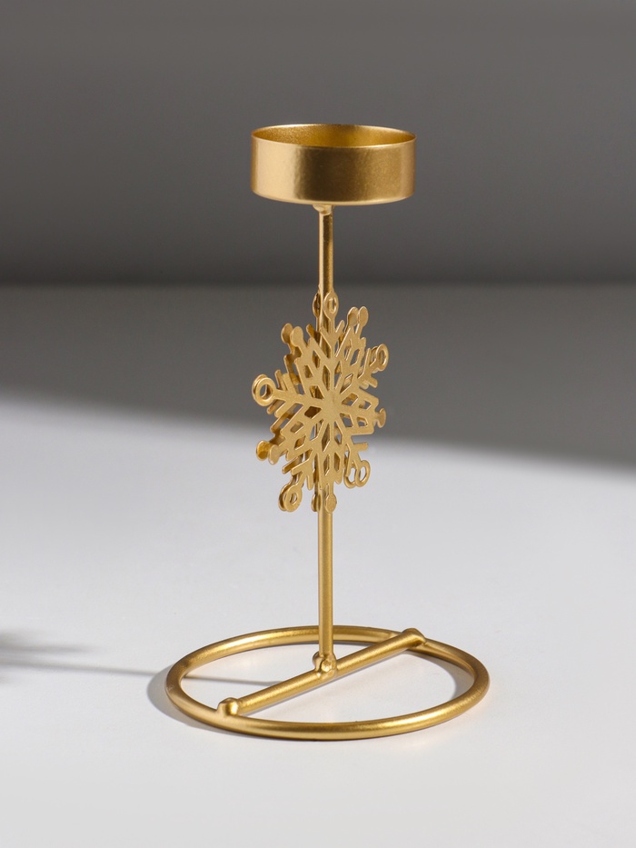 Подсвечник металл на 1 свечу "Снежинка" золото d=4,5 см 8,5х8,5х16 см — Характеристики